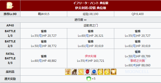 注:仅显示最高难度(典位级)的敌方配置。低难度配置除了怪物血量外没有大的区别。