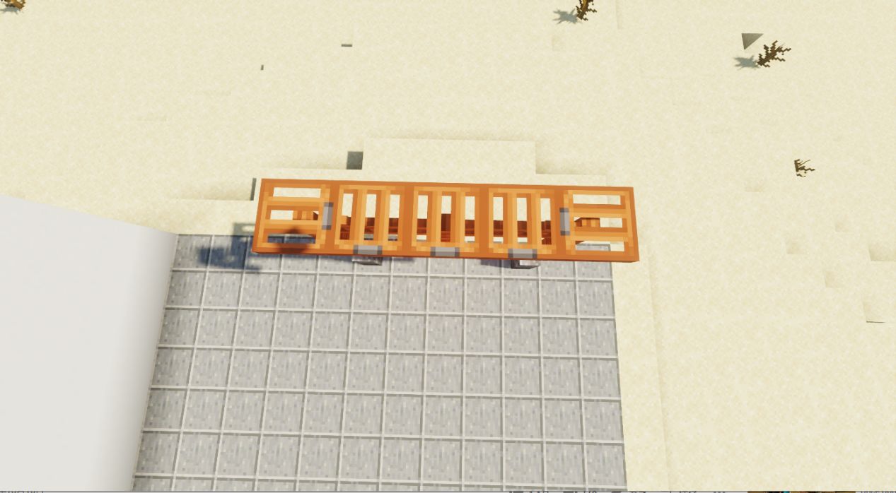 首先,我们用两个圆石墙做花园门的底座!然后在这两个底座上放3格金合欢栅栏。