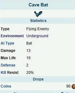 杀死地下的洞穴蝙蝠有0.4%几率掉落