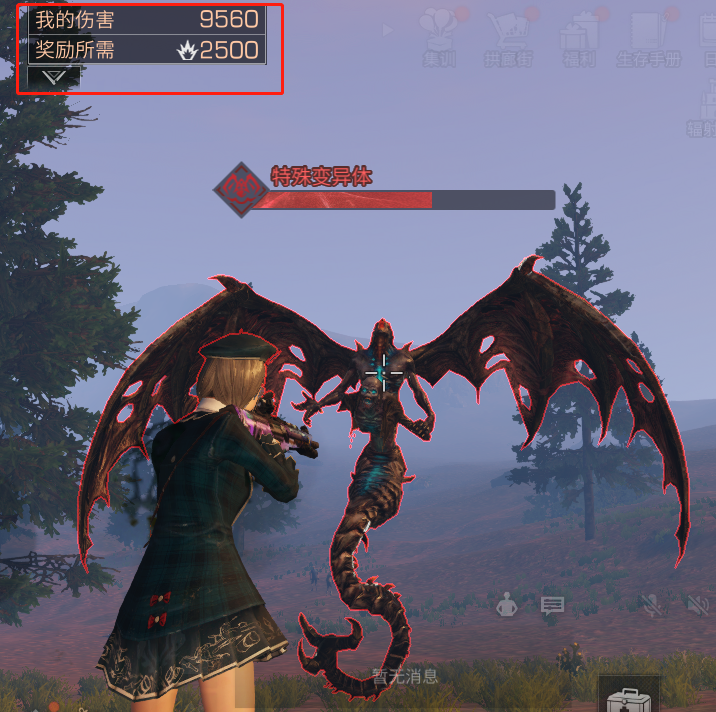 不同地图不明生物的奖励所需伤害不同,在集火不明生物过程中可在左上方查看最低伤害要求以及玩家当前伤害。