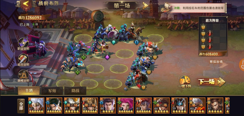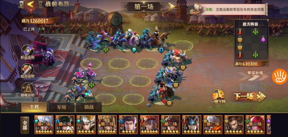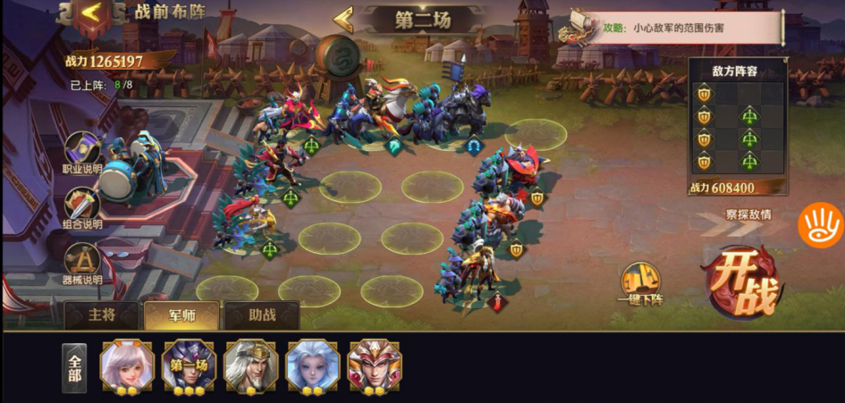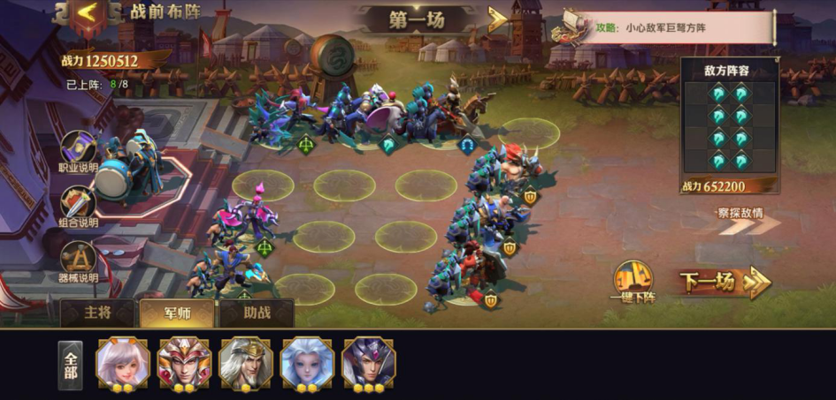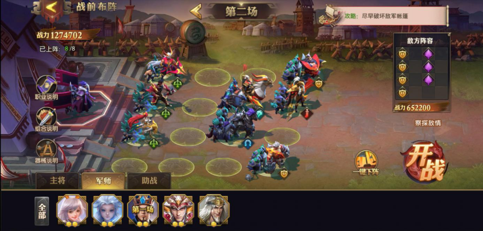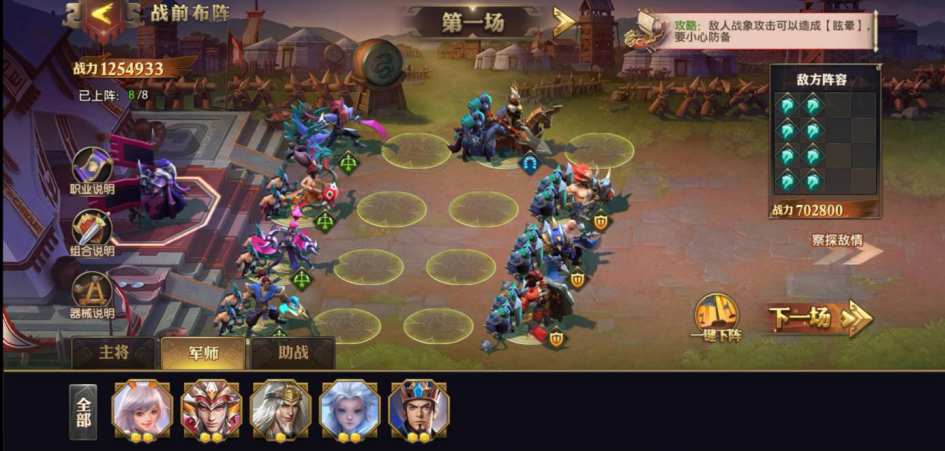 由于对方有一定的晕眩能力,因此前排有的时候不一定能及时释放回血或者保命技能,需要军师荀彧辅助提高生存率。