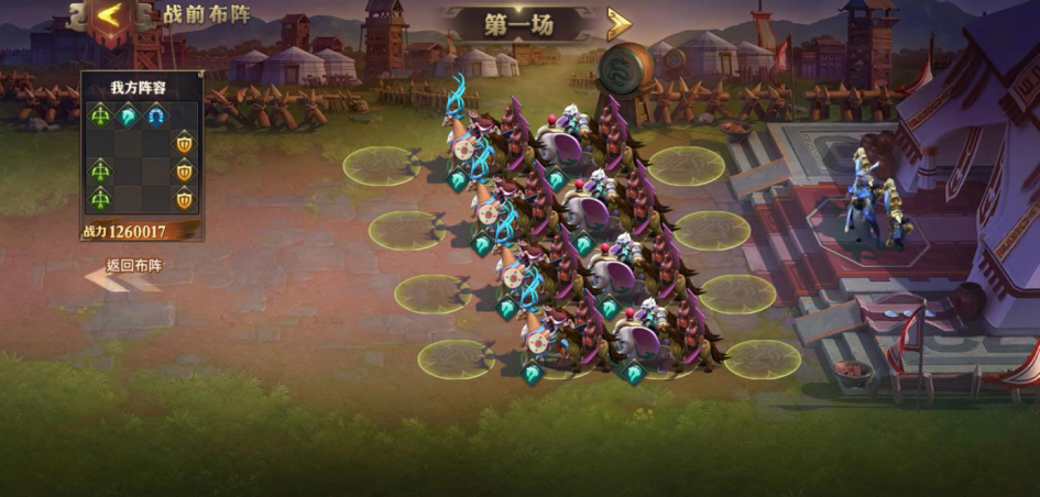 对面前排不管是步兵还是盾将都有自我回血能力,但是步兵相比于盾将来说坦度要低很多,因此我们可以把重骑安排在与对方步兵同行的位置。