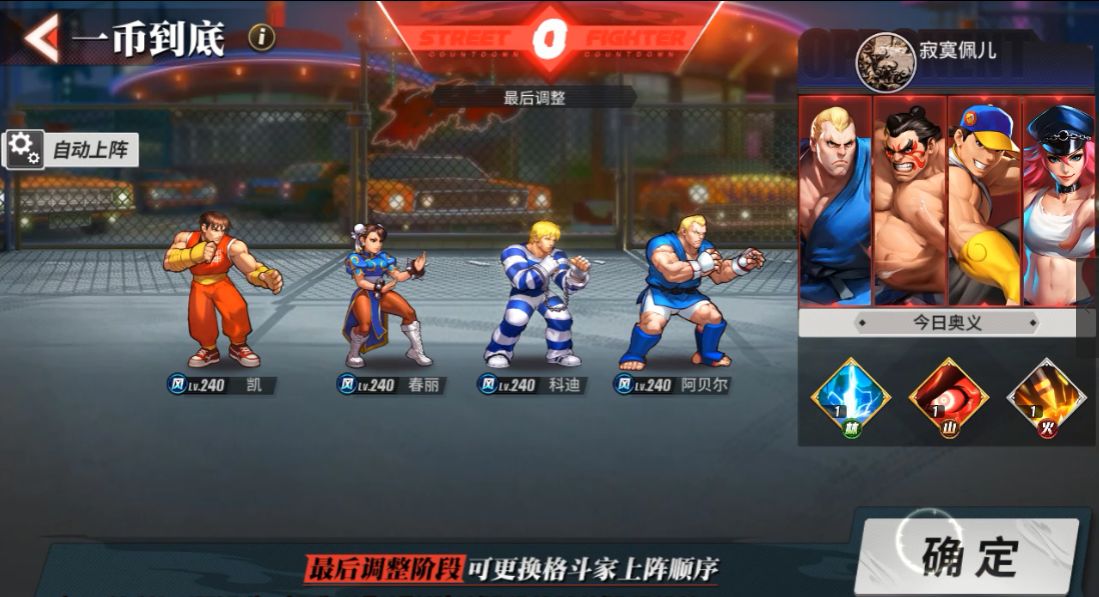 春丽、狼王桑吉尔夫、凯,替补阿贝尔