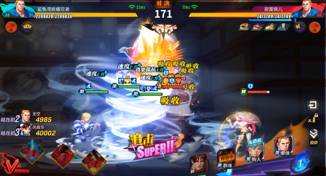 这套阵容并没有在PVE对战力强大,因为超高速回能无法在PVP里生效,就导致春丽有些颓势。不过,狼王桑吉尔夫的登场,稍微改变了一些局势。因为狼王的核心在聚怪,其连招1和超连1,都能够将敌方多人拉到自己身边,此时衔接一个凯的超连2,在造成伤害之余,还能让下一次连击链伤害提升50%。此时再使用春丽的超连3,能够将范围伤害最大化。