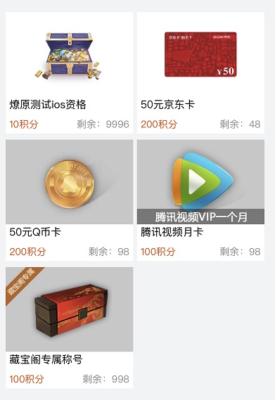 妄想山海藏宝阁小程序中上架了京东卡、Q币卡、腾讯视频月卡,更有不删档藏宝阁专属称号可供兑换!