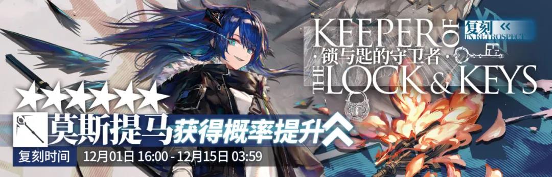 活动说明:活动期间【锁与匙的守卫者】将开启限时寻访复刻,该寻访中以下干员获得概率提升
