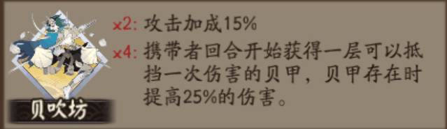 2件套的攻击加成和贝甲的增伤效果,另外御魂赋予的贝甲是在携带式神的开始回合才会获得,判定会在彼岸花造成伤害后,所以很难用来对抗彼岸花。