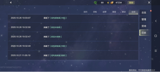 玩家可以通过日志清楚的了解家园内所发生的事情,例如谁攻击了自己的家园,自己在家园中增添了什么物品等。