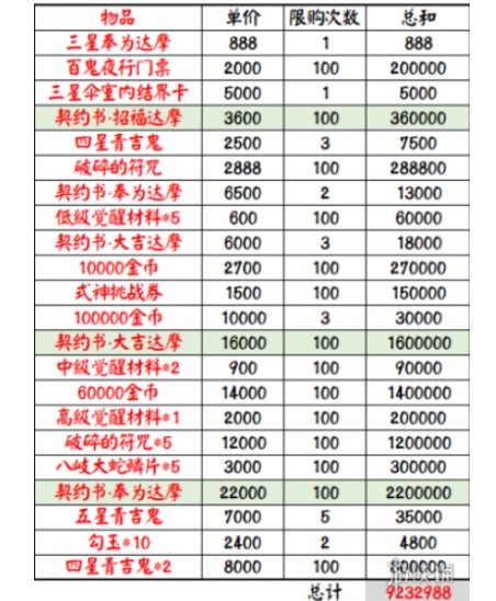 萌新:3192500积分建议先搬右边的高级物品,优先召唤卷/黑蛋/薰皮肤/体力/高星白蛋/六星结界卡