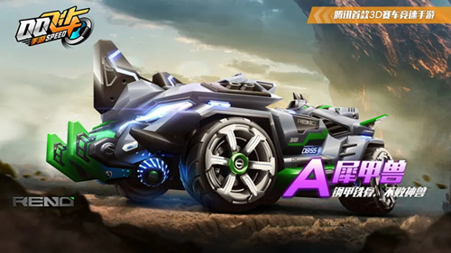 犀甲兽车头巨大的犀角,车身使用坚固的铁甲材质,如同一只重装犀牛纵横赛场。
