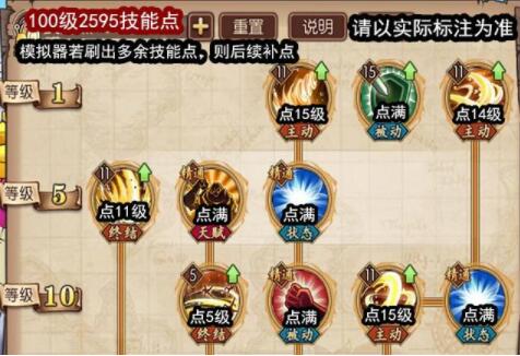备用的小技能我们点个11级即可,主用的点到15级,有个主用的小技能只能点到14级,技能点就不够了,那个点14级的,自己根据自己偏好选择,反正就1级,差不了多少。