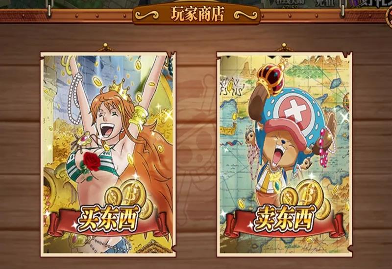交易所也叫玩家商店,主要提供两项功能,一个是买,一个是卖。如果是出来买东西,那么就点击娜美,如果是出来卖的,那就去点乔巴。