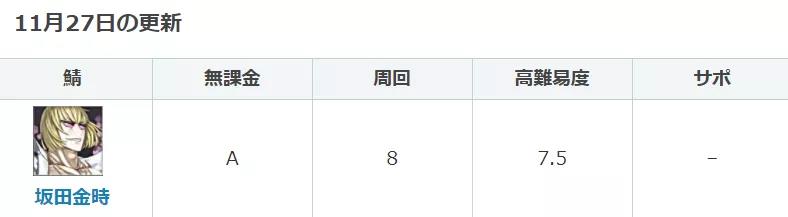 在开放了具体的宝具本之后,如今五星狂阶的坂田金时,新手向能给到A级别的评分,周回给了8分,高难给了7.5分的定位,可以说从之前中等强度的评价基本上都提高到了上等级别,虽然看起来只不过是一个宝具本的开放和加成而已,但对于金时的强度评价可以说是质变级别的。