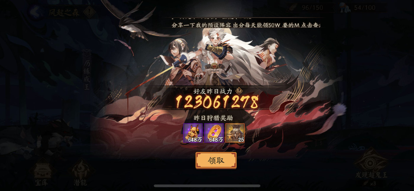 这次超鬼王由新式神(SP山风)代替阴阳师出阵。这有些像过往爬塔,有技能点(潜能)设置。这次SP山风输出强力,对萌新和肝度不那么高的朋友是个很好的福利