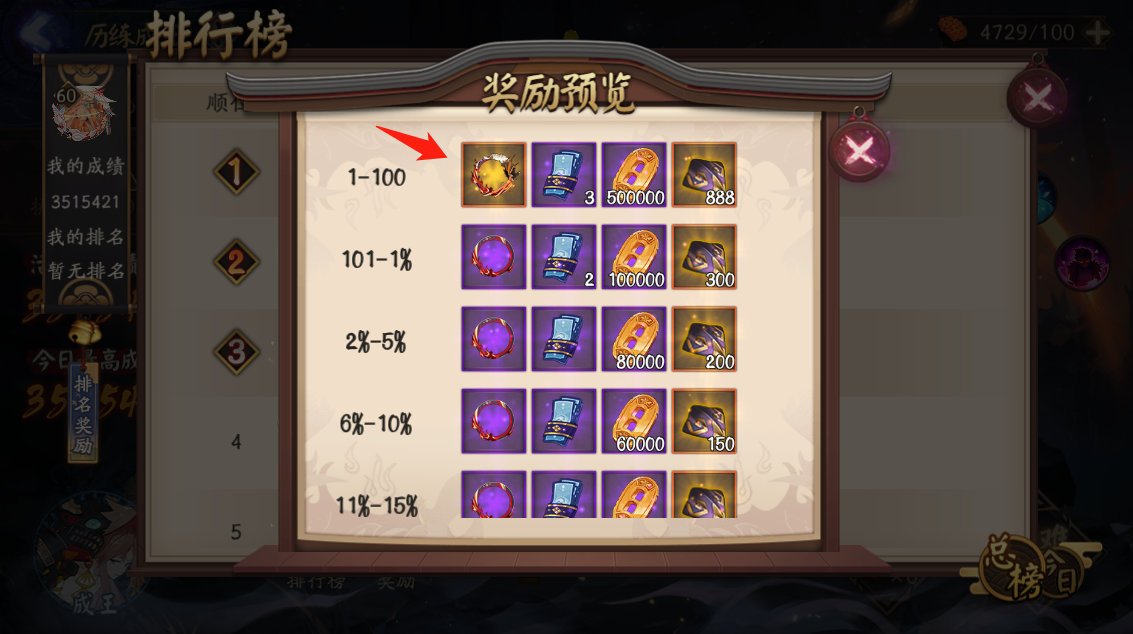 两者差的还是蛮大的,对热衷超鬼王爆肝顶级大佬来说,从第三天开始就能蹭到500-600万分一天了,还是相当可观的。最右面那个金色罐头是六星御魂奖励,算是锦上添花的东西了。万一出个头