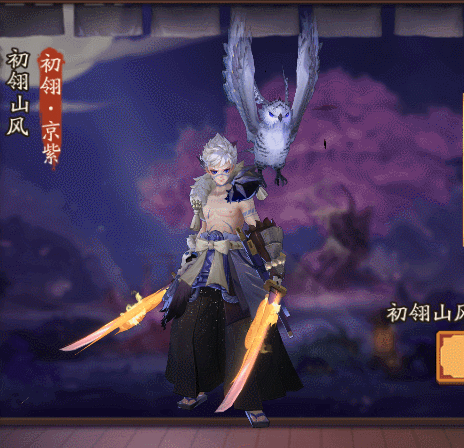 这款皮肤是SP皮肤京紫系列皮肤,与其他的皮肤一样,这款皮肤整体为紫色,旁边的猫头鹰也是紫色,刀锋呈现橙黄色,风格与原皮相似。