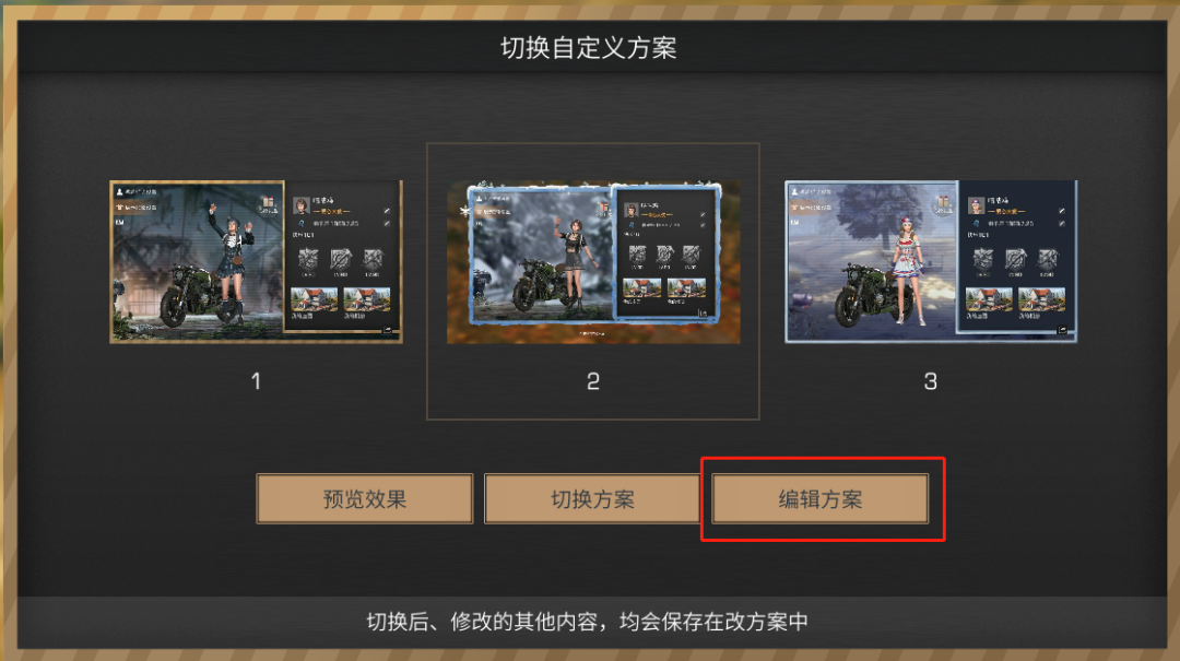 为了方便幸存者快速切换自己喜欢的名片样式,可以在自定义方案中编辑新方案并保存,切换自己喜欢的方案,即可快速改变名片样式。