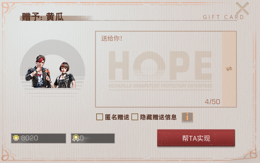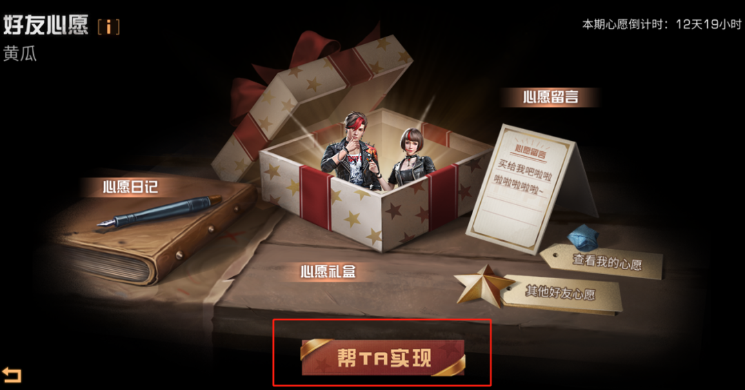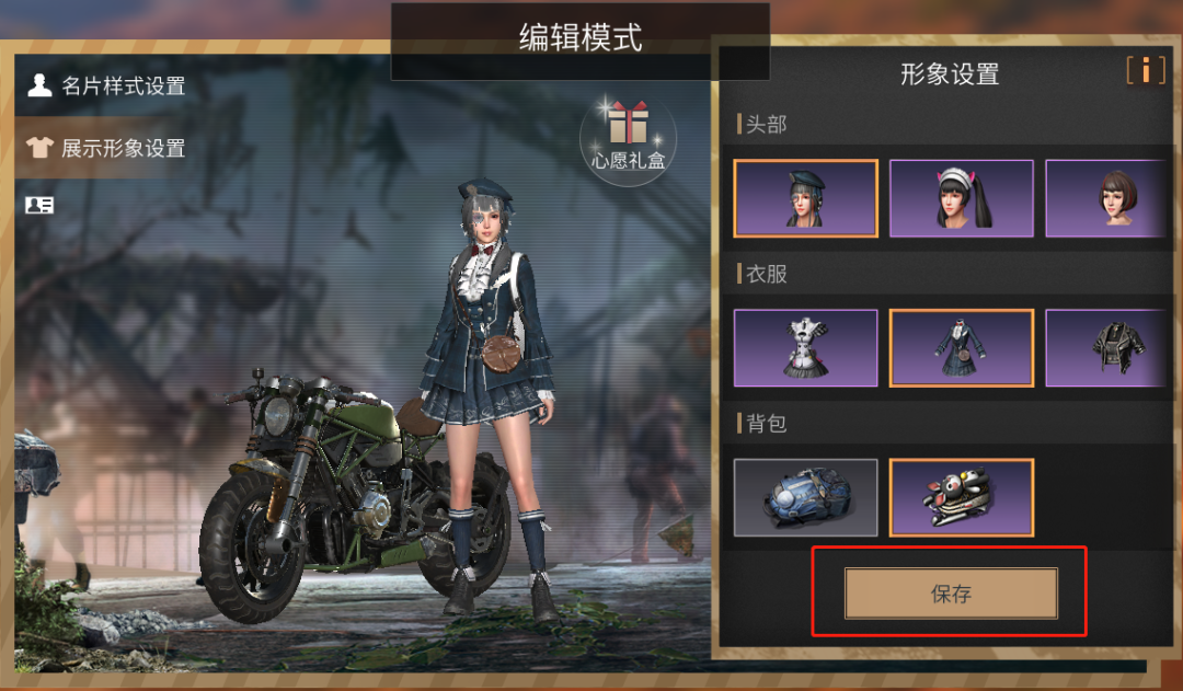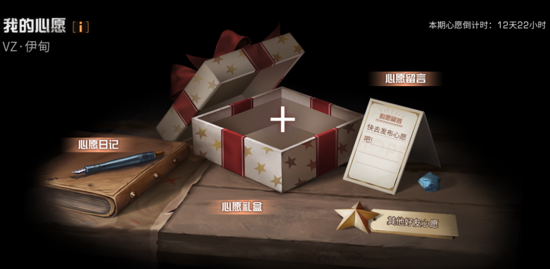 心愿将会发布在幸存者名片中的心愿礼盒界面。