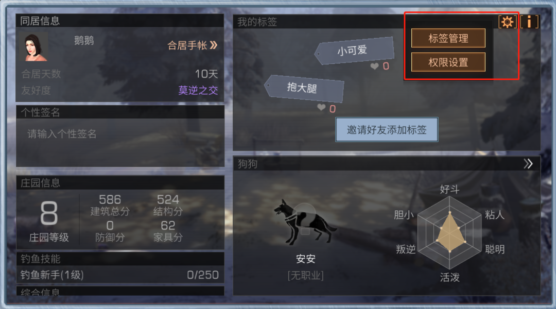 幸存者可以设置自己标签的编辑权限。只有自己设置了允许权限的玩家才可以为自己贴标签。其他玩家还可以对幸存者展示的标签进行点赞、