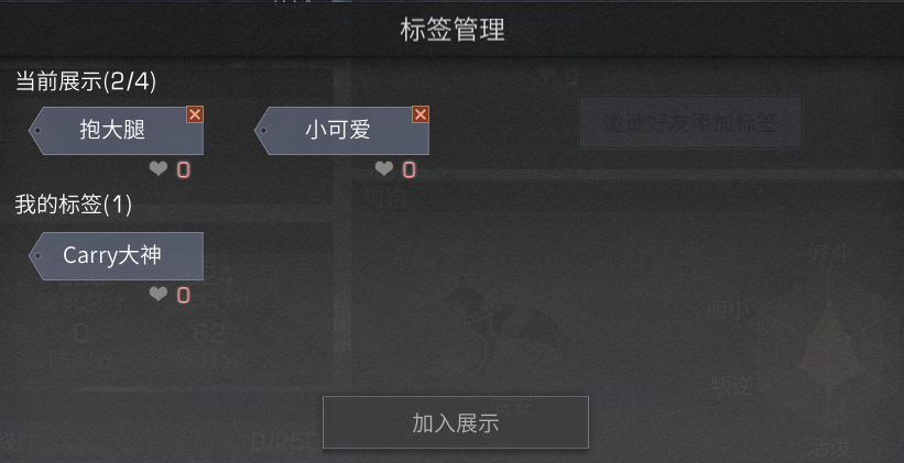 幸存者可以查看自己的标签库,并选择4个标签进行展示。
