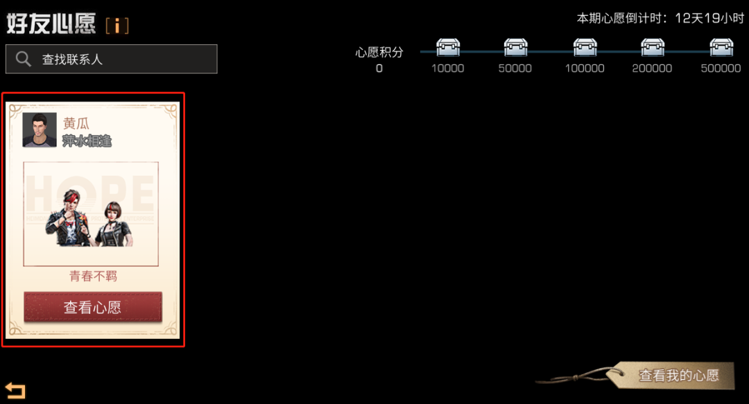 帮助他人实现心愿的幸存者可以额外获得友好度奖励,以及与消耗信用点等额的心愿积分。