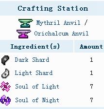 20光明碎片20邪恶碎片,20光明之魂,20黑暗之魂,以及25个神圣锭合成