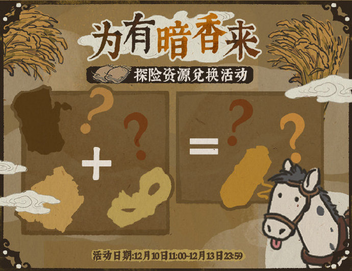 活动规则:为有暗香来生产资源兑换活动,在活动期间内,搜集指定的生产类资源即可在活动界面兑换相应的奖励。