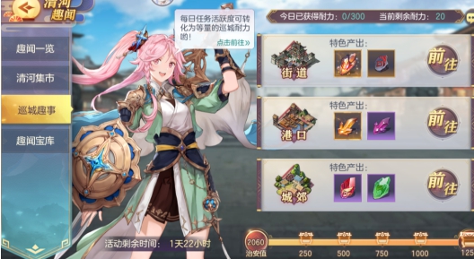 2、消耗耐力值巡逻「街道」、「港口」、「城郊」即可积累清河郡[治安值],并有概率获得刻印石、高级神锻石、超大军团红包等惊喜豪礼!