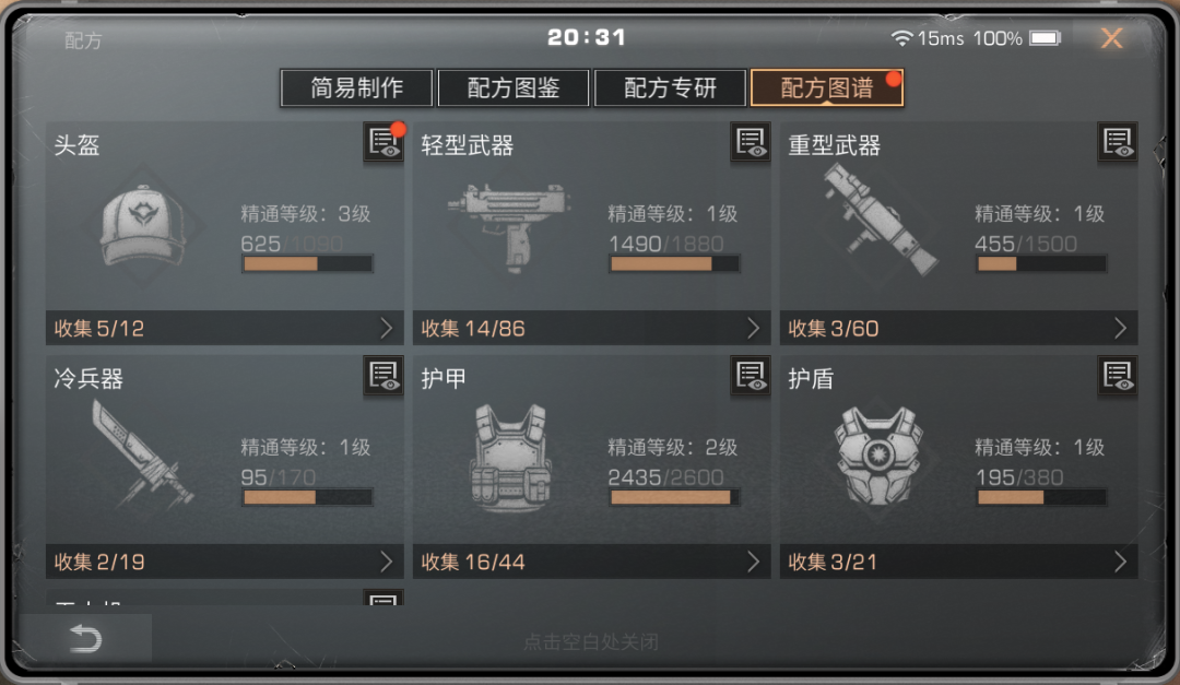 学习新配方或配方升星时,可获得配方所属分类的配方图谱精通度。