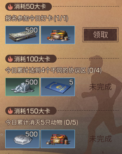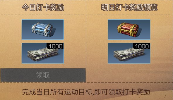 每天消耗300大卡,领取当天的额外打卡奖励,打卡礼盒及新币*1000。