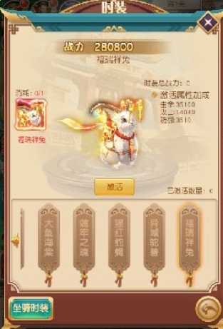 点击主角按钮进入角色界面,选中坐骑按钮,即可打开坐骑界面。