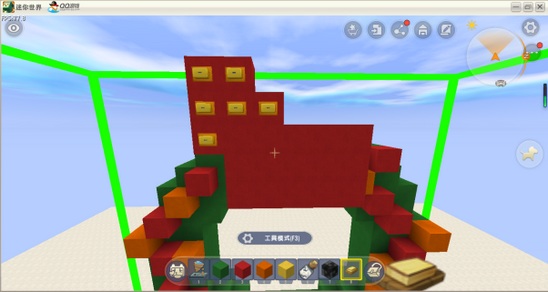 我们先拿出红色硬沙块,在一格后,做一个5x3的长方体。