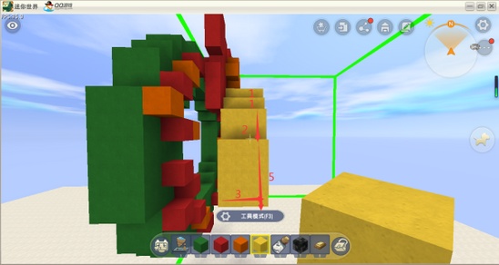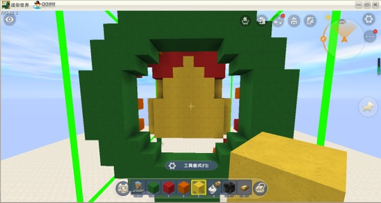 第一步,我们把模型工作台放到地上后,我们先拿出绿色硬沙块,做出花环的主体。做一个直径为11格的圆。