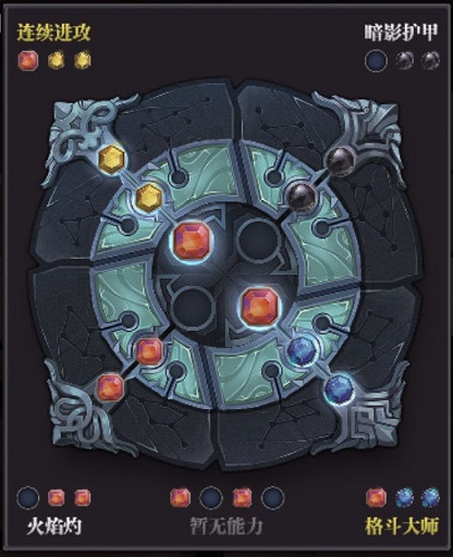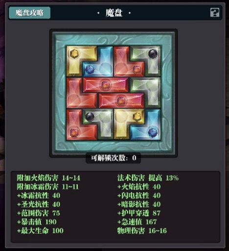 转两次连续攻击和战斗大师出门,中间赌火爆君,右上黑黑(暗影抗性+40)左下红红(火焰伤害+13)出门非常好的法盘。