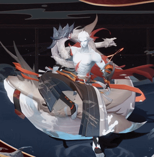 巨鲸:白色巨鲸盘踞脚下,腰间鳞甲铮铮作响。身影立于海潮之上,踏浪而战,英姿骁勇。