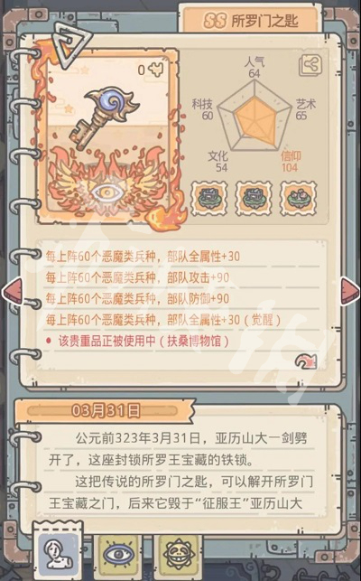 光环技能:每上阵60个恶魔类兵种,部队全属性+30(觉醒)