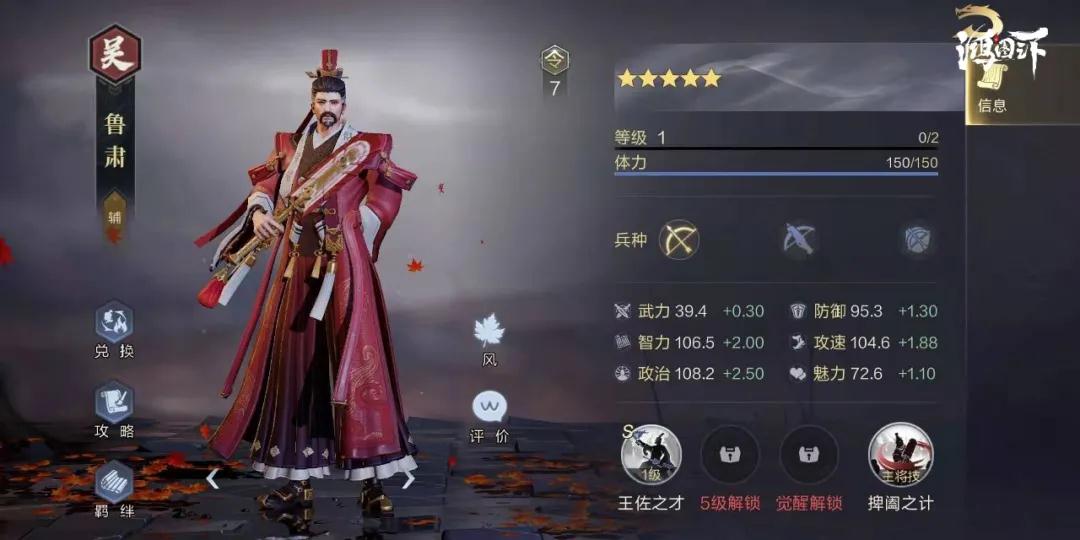 鲁肃的攻速属性虽然不高,但是他的指挥武技拥有很强的法师队增益效果,且1.8的速度成长,如果全速加点的话,也是可以超越普通的主动型输出武将的。
