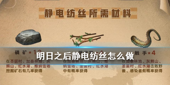 明日之后静电纺丝怎么做,在游戏中静电纺丝作为护甲工专属的半成品,玩家需要哪些材料来进行制作呢?对此,不了解的小伙伴,那就快来看看小编给大家准备的相关游戏内容吧!