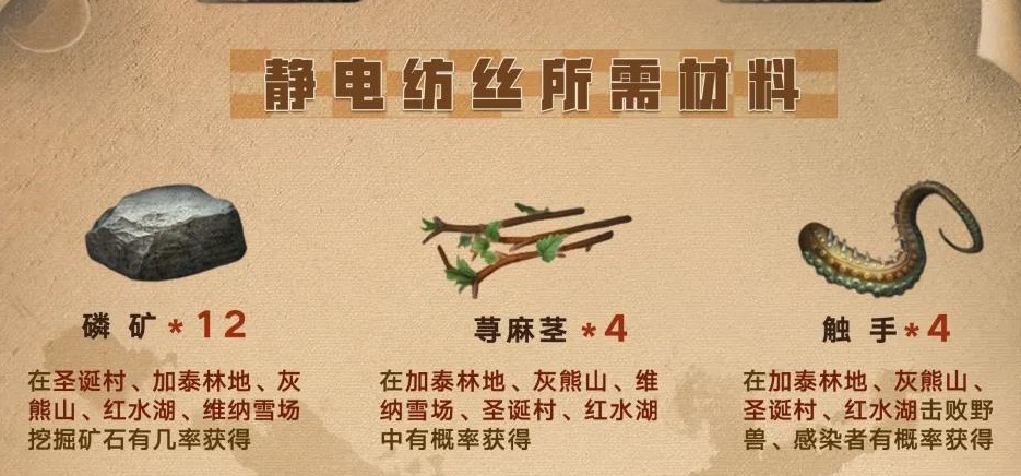 配方:静电纺丝=磷矿*12+荨麻茎*4+触手*4