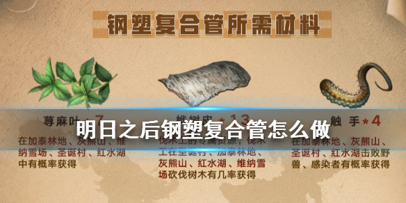 明日之后钢塑复合管怎么做,钢塑复合管作为游戏在第三季更新的一种半成品材料,玩家应该怎么进行制作呢?为此,小编为大家特地准备这篇更加详细的攻略,快和小编一起来看看吧!