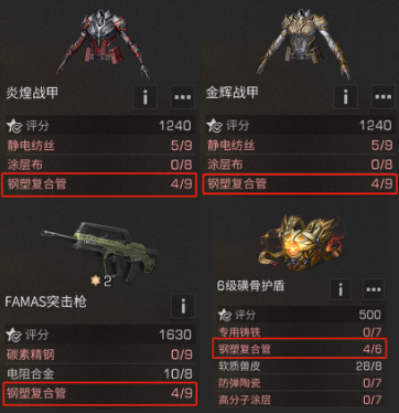 钢塑复合管可用于90级武器和护甲的制作,是制作炎煌战甲、金辉战甲、FAMAS突击步枪、6级磺骨护盾的材料。