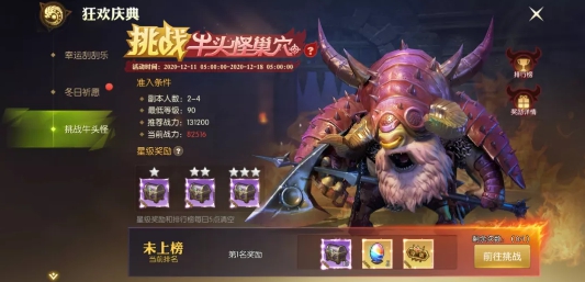 1. 活动期间,等级达到90级及以上的冒险家可参与挑战牛头怪巢穴的活动。