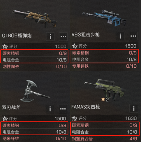 而碳素精钢及电阻合金是制作QLB06榴弹炮、R93狙击步枪、双刃战斧、FAMAS突击步枪等新武器的必备材料,因此在末世的需求量较大。