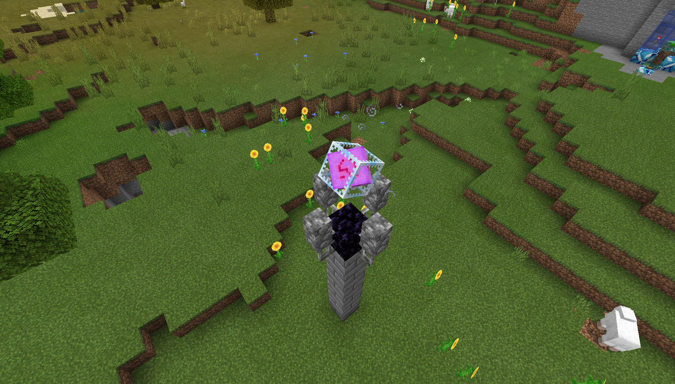 在黑曜石上放置末影水晶,周围的圆石墙上都放置三格高的玻璃。