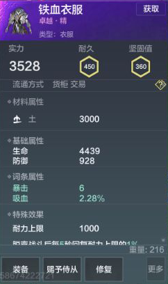 吸血词条增加战力不是太高,不过是属于必需品,只有草莽台子和铁血台子才有,有吸血词条之后打怪可以一边打一边回血。
