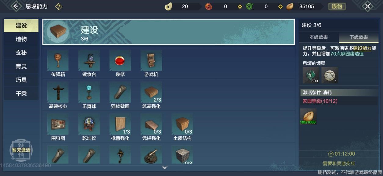 其中有筑基强化、墙壁强化、凭栏强化、望轩强化、脊檐强化、基建核心、基建精通等。