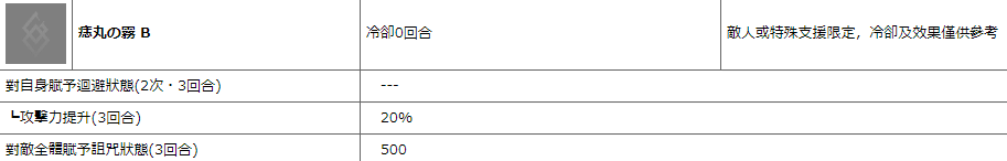 付与敌方全体:诅咒状态500(3回合)。