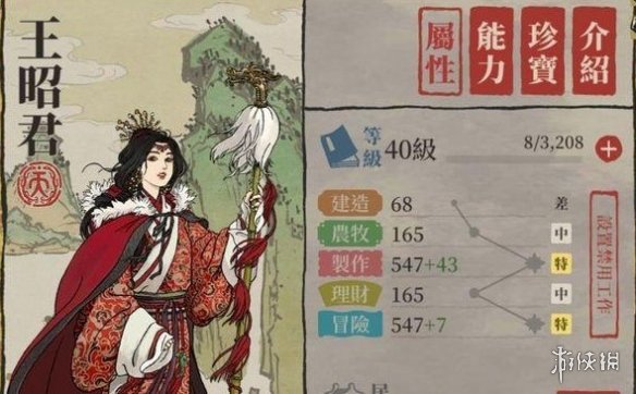 探险只消耗0.6粮草,个人感觉一般般,40分钟一份粮草,昭君妹妹可以帮大家提前16分钟出门,不过昭君冒险属性高,能力可能用途不算太大,但是依然不失为探险的优选。