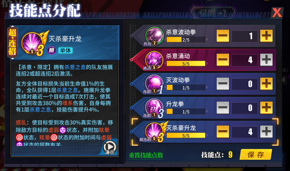 街霸对决杀意隆怎么加点