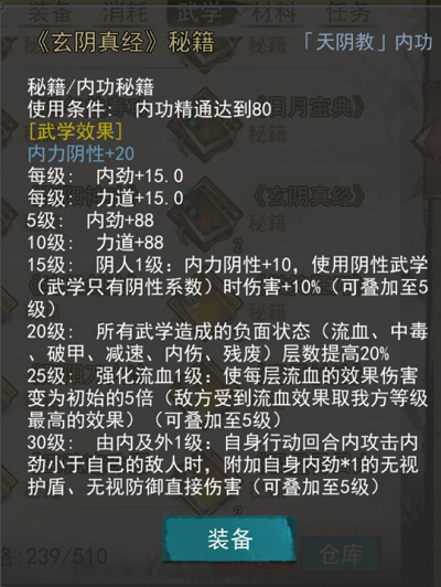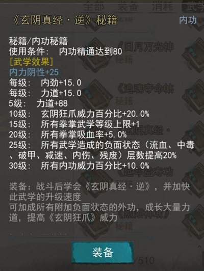 阴属性内功系列:日月宝典、玄阴真经、玄阴真经逆、吸星吞日大法